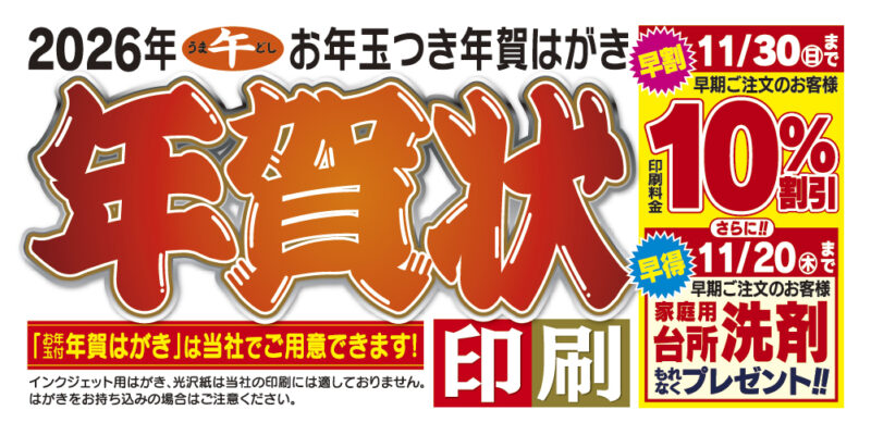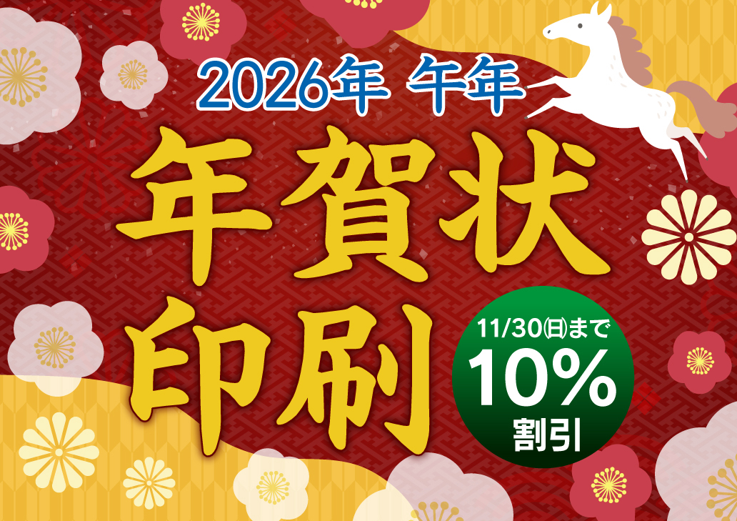 2026年の年賀状印刷 承り中(11/30(日)まで10%割引)